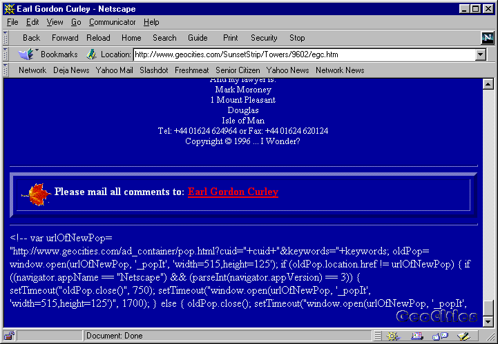 We couldn't believe it the other day when we loaded a webpage from the Geocities webserver, and no annoying pop-up ads appeared!!!!! Then we saw the bottom of the page... Ho ho ho ho!!!!!